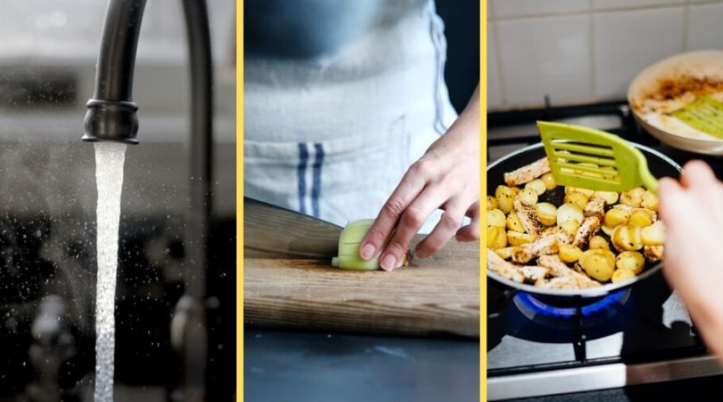 W takim układzie najpierw myjemy produkty, następnie mokre przenosimy nad płytą i uważamy, by woda nie kapała na rozgrzaną patelnię, by w końcu zacząć przygotowanie posiłku. Jednak każdorazowe umycie produktów wymaga ominięcia płyty i kolejnych kroków, by wrócić do blatu roboczego.