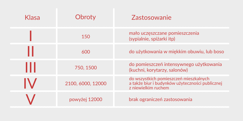 Parametr opisujący odporność gresu na zarysowania to jego klasa ścieralności, określana liczbami rzymskimi od I do V, gdzie im wyższa liczba, tym materiał jest bardziej odporny na ścieranie. Jeśli obawiamy się zarysowań na podłodze, to warto wybierać gres w klasie ścieralności minimum III, a najlepiej w klasie IV.