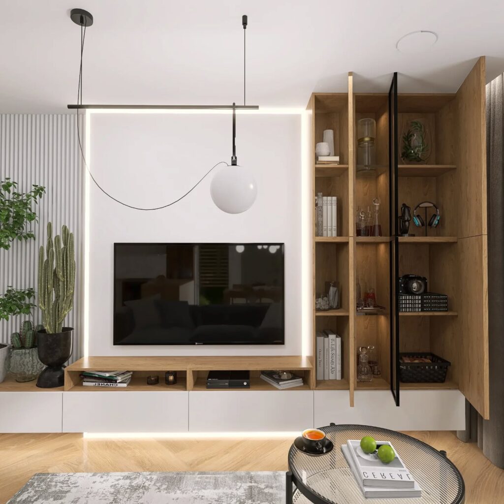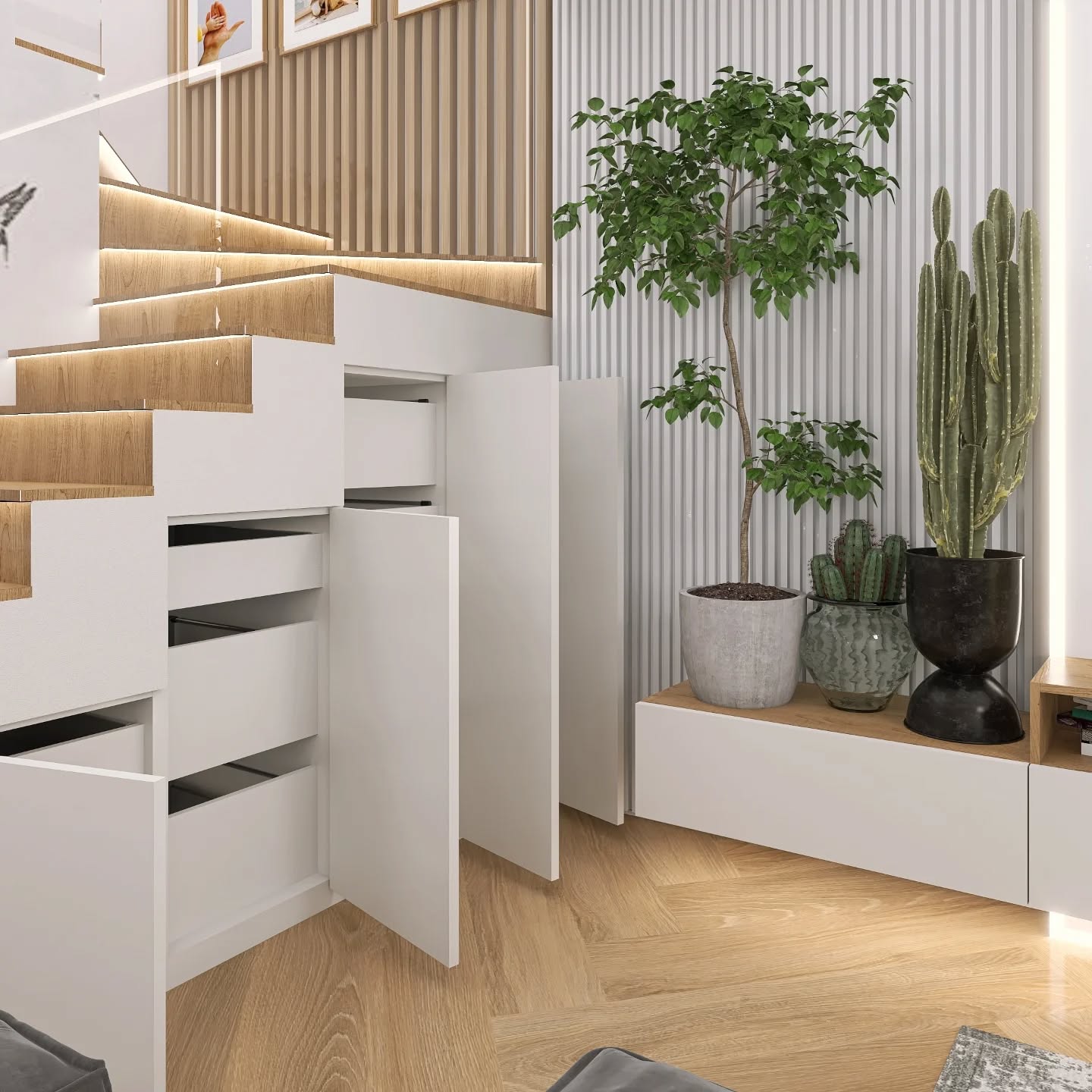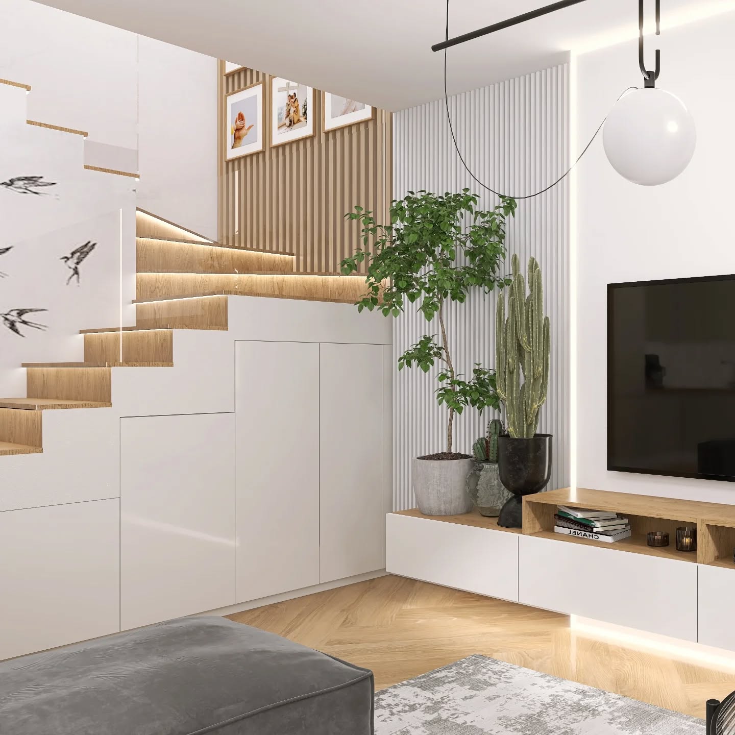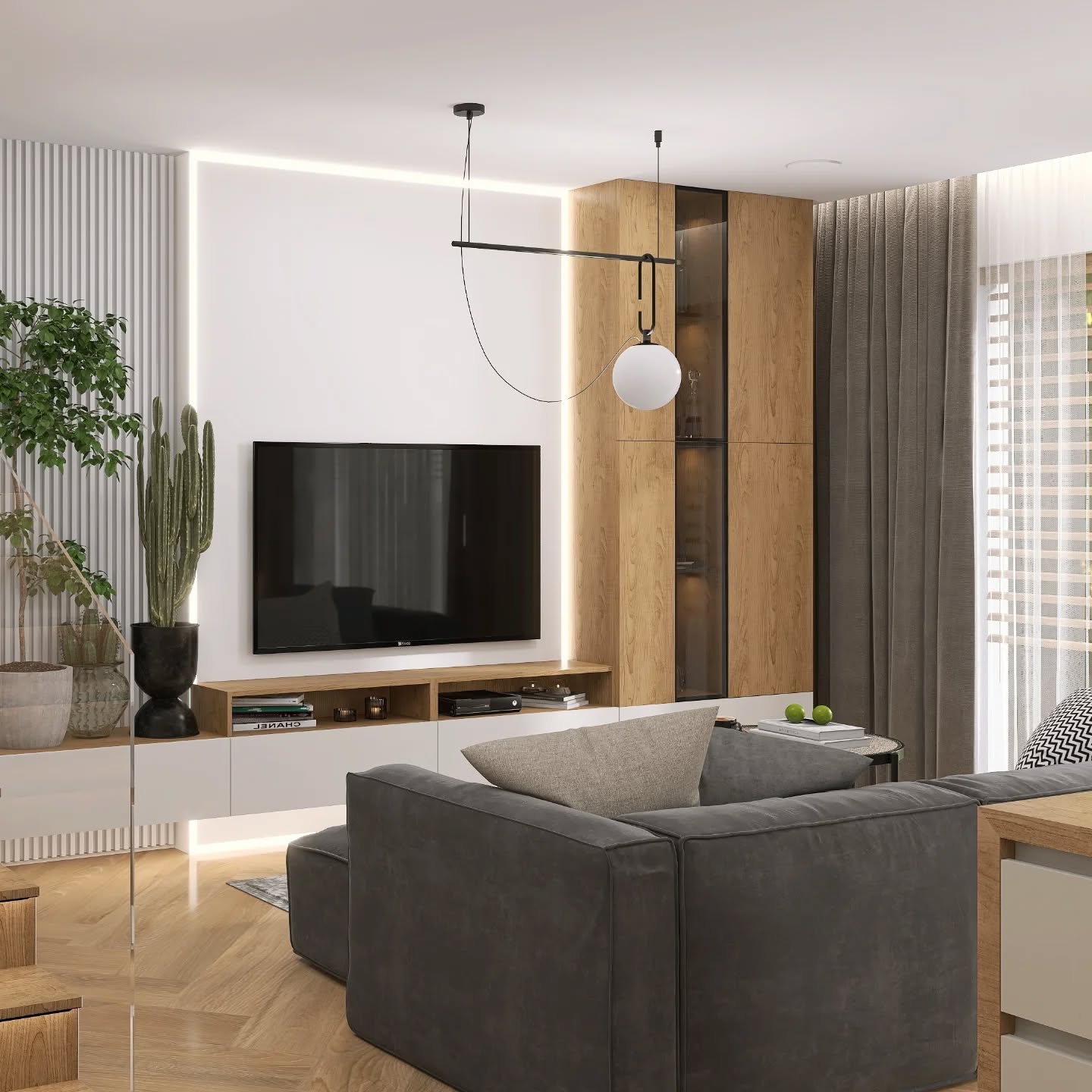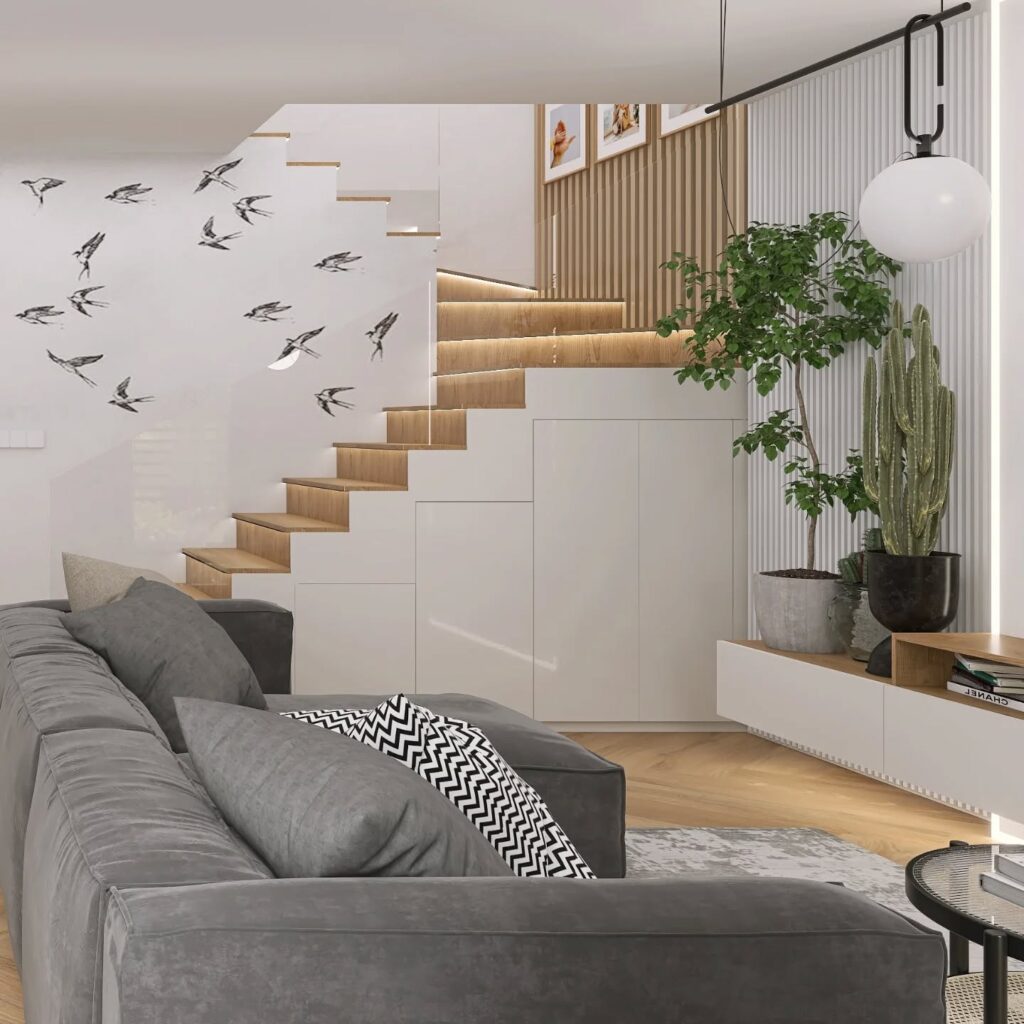 Każde wnętrze ma swoją historię. W tym salonie minimalizm spotyka ciepło, a funkcjonalność spotyka się z estetykę. Każdy detal jest przemyślany, by życie w tym domu było prostsze, wygodniejsze i piękniejsze dla swoich domowników.